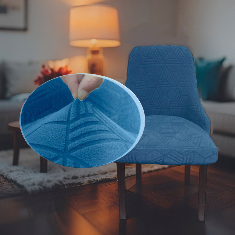 • очень мягкий и удобный: жаккардовая ткань с геометрическим узором из высокоэластичного полиэстера и спандекса, мягкая и дышащая, не мнется. Быстро восстанавливающаяся суперэластичность подходит для четырех сезонов, придавая вашему стулу новый вид;
