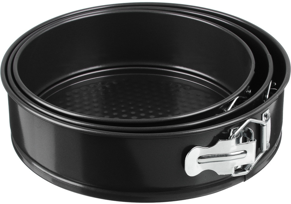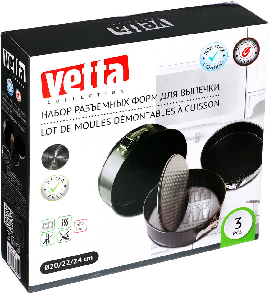 Vetta Набор форм для выпечки разъемныхВ данный момент этот товар отсутствует в продаже. Возможно, у нас найдется аналогичный или похожий товар здесь. Набор из 3 разъемных форм для выпечки различного диаметра — 20 см, 22 см, 24 см, с высотой бортика 6.5 см, изготовлены из углеродистой стали с двухслойным антипригарным покрытием изнутри и снаружи и предназначены для использования в духовых шкафах. |