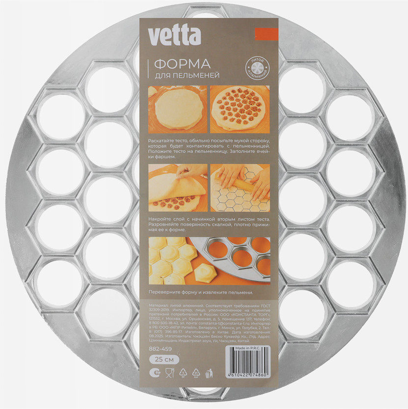 Vetta Форма для пельменейВ данный момент этот товар отсутствует в продаже. Возможно, у нас найдется аналогичный или похожий товар здесь. Нужно быстро приготовить обед? С функциональным приспособлением Vetta вы сможете накормить всю семью за считанные минуты. Форма для приготовления пельменей 25 см выполнена из алюминия. Раскатайте тесто, обильно посыпьте мукой сторону, которая будет контактировать с пельменницей. Продавите пальцем дырочки, начиная с середины конструкции. Далее заполните ячейки фаршем так, чтобы он не выступал за края. Накройте изделие вторым листом теста липкой стороной вниз. Разровняйте поверхность скалкой. Переверните кухонный гаджет и потрясите. Пельмени готовы! |