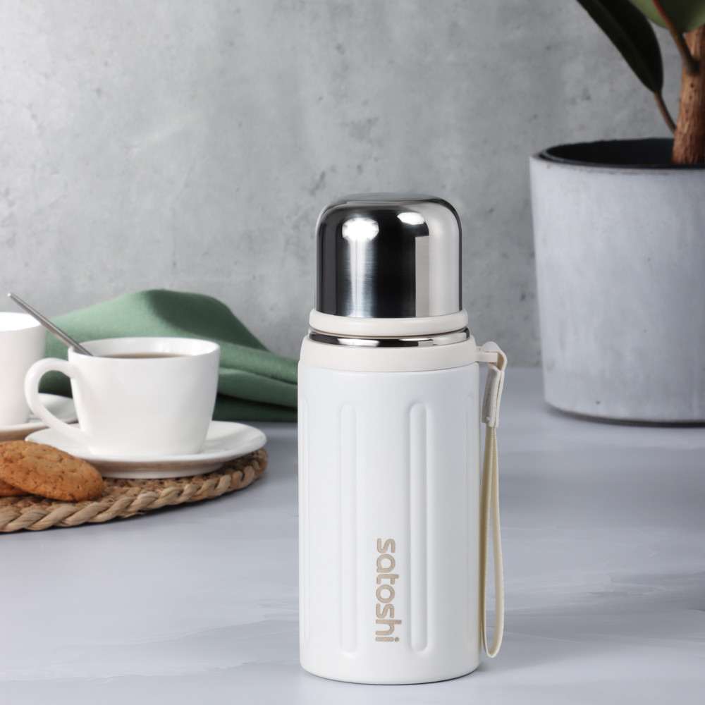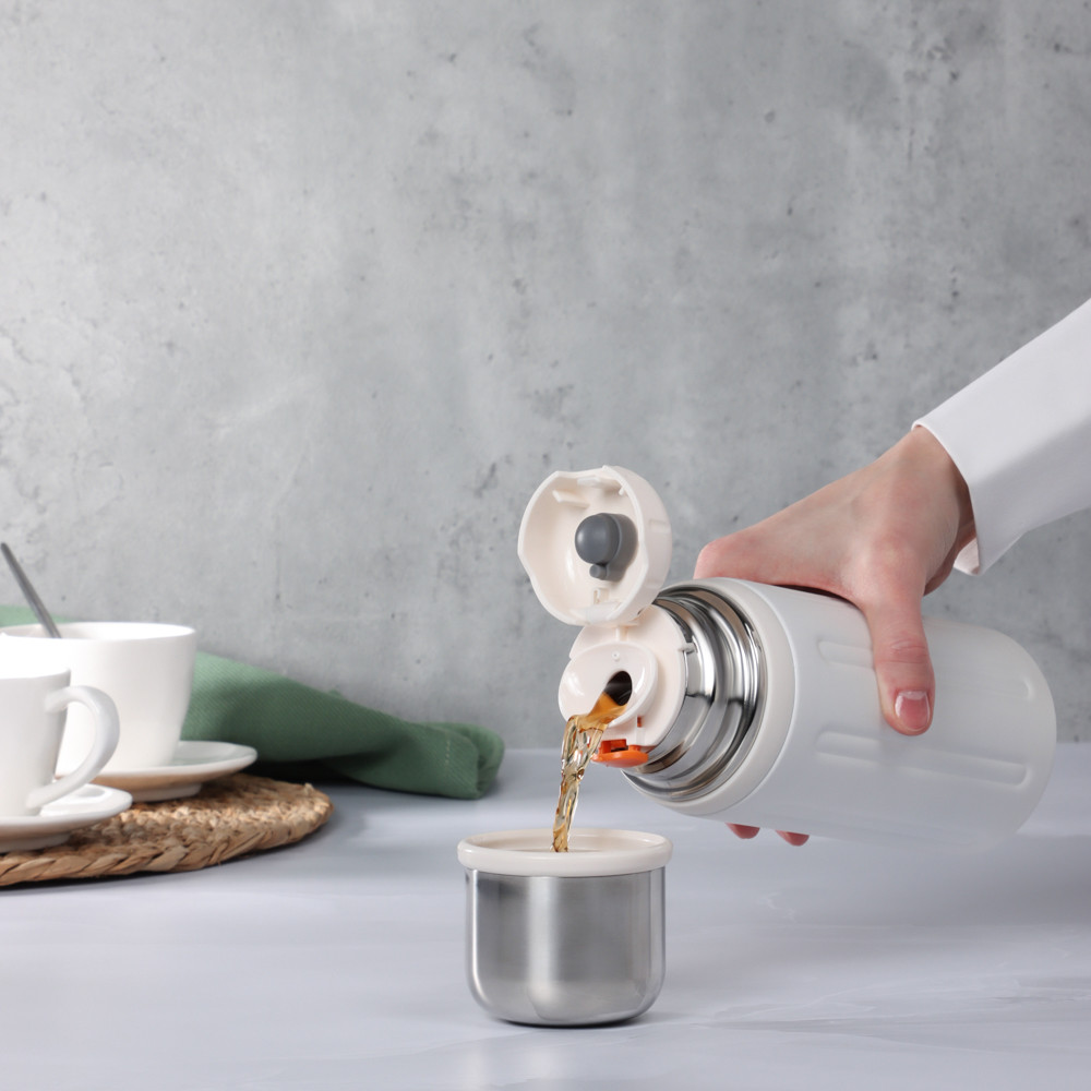 Термос — это надежный помощник для тех, кто ценит комфорт и горячие напитки в любое время суток. Благодаря прочному корпусу и качественной теплоизоляции он долго сохраняет температуру содержимого, позволяя наслаждаться любимым чаем, кофе или свежими прохладительными напитками где угодно — на работе, в дороге или на прогулке. Удобная конструкция обеспечивает легкое открывание и комфортное использование, а стильный современный дизайн делает термос не только практичным, но и привлекательным аксессуаром.