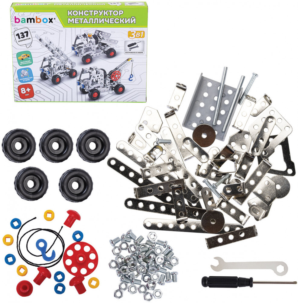 💳 Оплатить за товар можно при получении 🇰🇿 Есть бесплатная доставка по Казахстану от 1 дня 🎁 Копите бонусы с каждой покупки Металлический конструктор BamBox «Строительная техника 3 в 1» — развивающая игрушка для детей старше 8 лет. Конструктор идеально подходит для занятий на уроках труда и комплексного развития ребёнка. Каждый элемент металлического конструктора BamBox «Строительная техника 3 в 1» продуман до мелочей. Круглые отверстия упрощают соединение деталей, а набор инструментов позволяет надежно закрепить их винтами и гайками. |