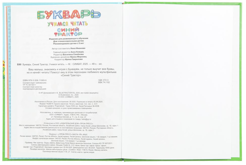 💳 Оплатить за товар можно при получении 🇰🇿 Есть бесплатная доставка по Казахстану от 1 дня 🎁 Копите бонусы с каждой покупки Серия: Любимая библиотека Букварь «Синий Трактор» из серии «Любимая библиотека» ТМ «УМка» станет прекрасным обучающим подарком для ребёнка. Букварь с крупными буквами — замечательный подарок для детей, которые только учатся читать. Яркие иллюстрации и персонажи любимого мультсериала — это то, что нужно для первого чтения. |