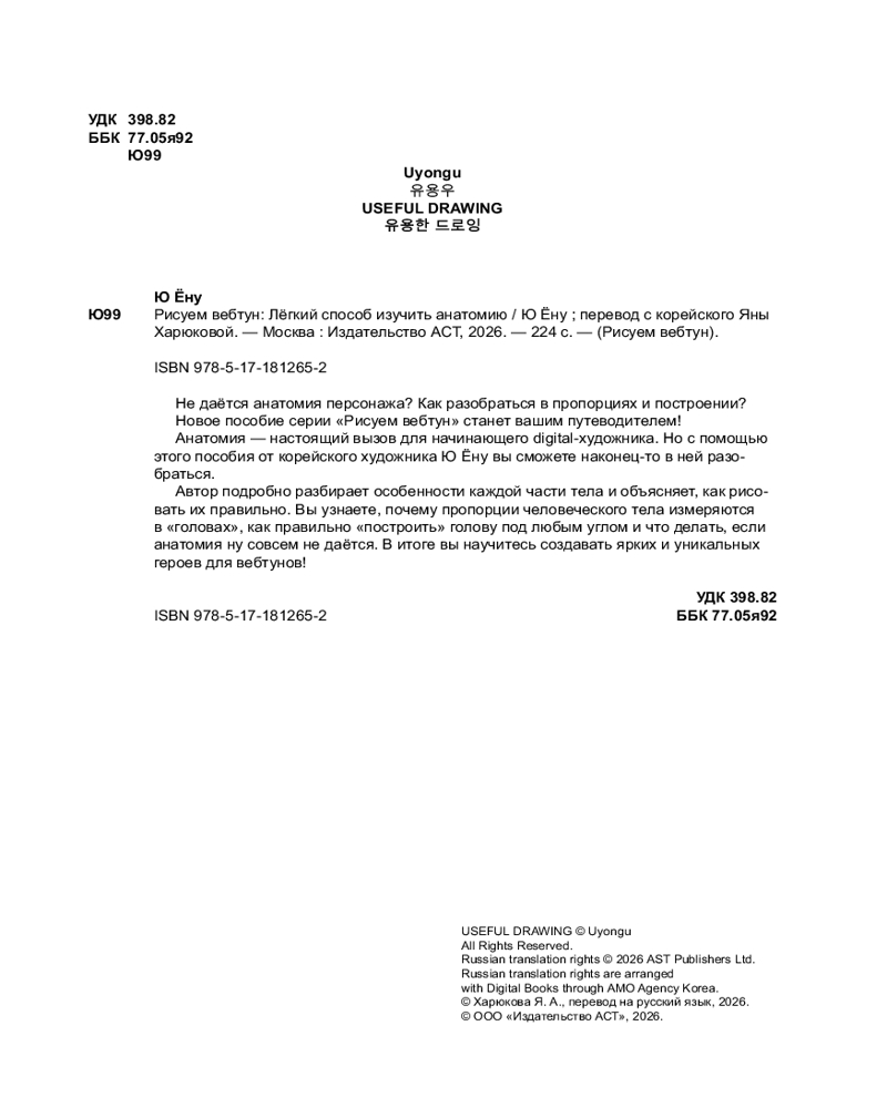 💳 Оплатить за товар можно при получении 🇰🇿 Есть бесплатная доставка по Казахстану от 1 дня 🎁 Копите бонусы с каждой покупки Серия: Рисуем вебтун Не даётся анатомия персонажа? Как разобраться в пропорциях и построении? Новое пособие серии «Рисуем вебтун» станет вашим путеводителем! Анатомия — настоящий вызов для начинающего digital-художника. Но с помощью этого пособия от корейского художника Ю Ёну вы сможете наконец-то в ней разобраться. Автор подробно разбирает особенности каждой части тела и объясняет, как рисовать их правильно. Вы узнаете, почему пропорции человеческого тела измеряются в «головах», как правильно «построить» голову под любым углом и что делать, если анатомия ну совсем не удаётся. В итоге вы научитесь создавать ярких и уникальных героев для вебтунов! |