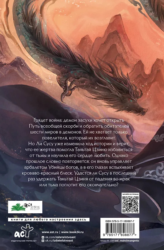 💳 Оплатить за товар можно при получении 🇰🇿 Есть бесплатная доставка по Казахстану от 1 дня 🎁 Копите бонусы с каждой покупки Серия: Хиты Китая. Светлый пепел луны Грядет война: демон засухи хочет открыть Путь всеобщей скорби и обратить обитателей шести миров в демонов. Ей не хватает только повелителя, который их возглавит. Но Ли Сусу уже изменила ход истории и верит, что ее жертва помогла Таньтай Цзиню избавиться от тьмы и научила его сердце любить. Однако прошлое словно повторяется: он вновь управляет арбалетом Убийцы богов, а в его глазах вспыхивает кроваво-красный блеск. Удастся ли Сусу в последний раз удержать Таньтай Цзиня от падения во мрак или тьма поглотит его окончательно? |
