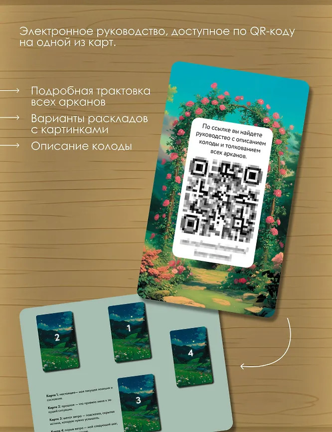 💳 Оплатить за товар можно при получении 🇰🇿 Есть бесплатная доставка по Казахстану от 1 дня 🎁 Копите бонусы с каждой покупки Серия: Легендарное Таро Колода Таро «Волшебные миры аниме» рождена из шепота древних лесов, танца тени и света, дыхания ветров, что несут с собой забытые легенды. Здесь природа дышит в унисон с душой, а каждый шаг — новая возможность. Эта колода говорит языком образов, которые знакомы каждому, кто хоть раз мечтал полетать на драконе, пробежаться по полю с звенящими светлячками или заглянуть в глубь таинственного леса. Вытяните карту и позвольте ветру перемен провести вас по сказочным тропам и найти ответы на важные вопросы. Автор колоды — Хаяо Миямура — приглашает в странствие по мирам, где можно восстановить свою связь с природой и заглянуть на ту сторону мироздания. В колоде представлено 78 карт Таро, а также QR-код на электронное руководство, где вы найдете описание колоды, варианты раскладов и толкование всех 78 арканов. |