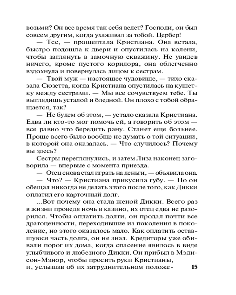 💳 Оплатить за товар можно при получении 🇰🇿 Есть бесплатная доставка по Казахстану от 1 дня 🎁 Копите бонусы с каждой покупки Серия: Очарование(мини)! Брак Кристианы Фэргрейв обернулся кошмаром: такой чуткий и внимательный до венчания, после произнесения брачных обетов супруг превратился в тирана. Целый год он отравлял ей жизнь и держал вдали от друзей и семьи. И вот ее сестры ранним утром заявляются к чете в дом без приглашения, чтобы выяснить, почему Кристиана даже не отвечает на их письма. |