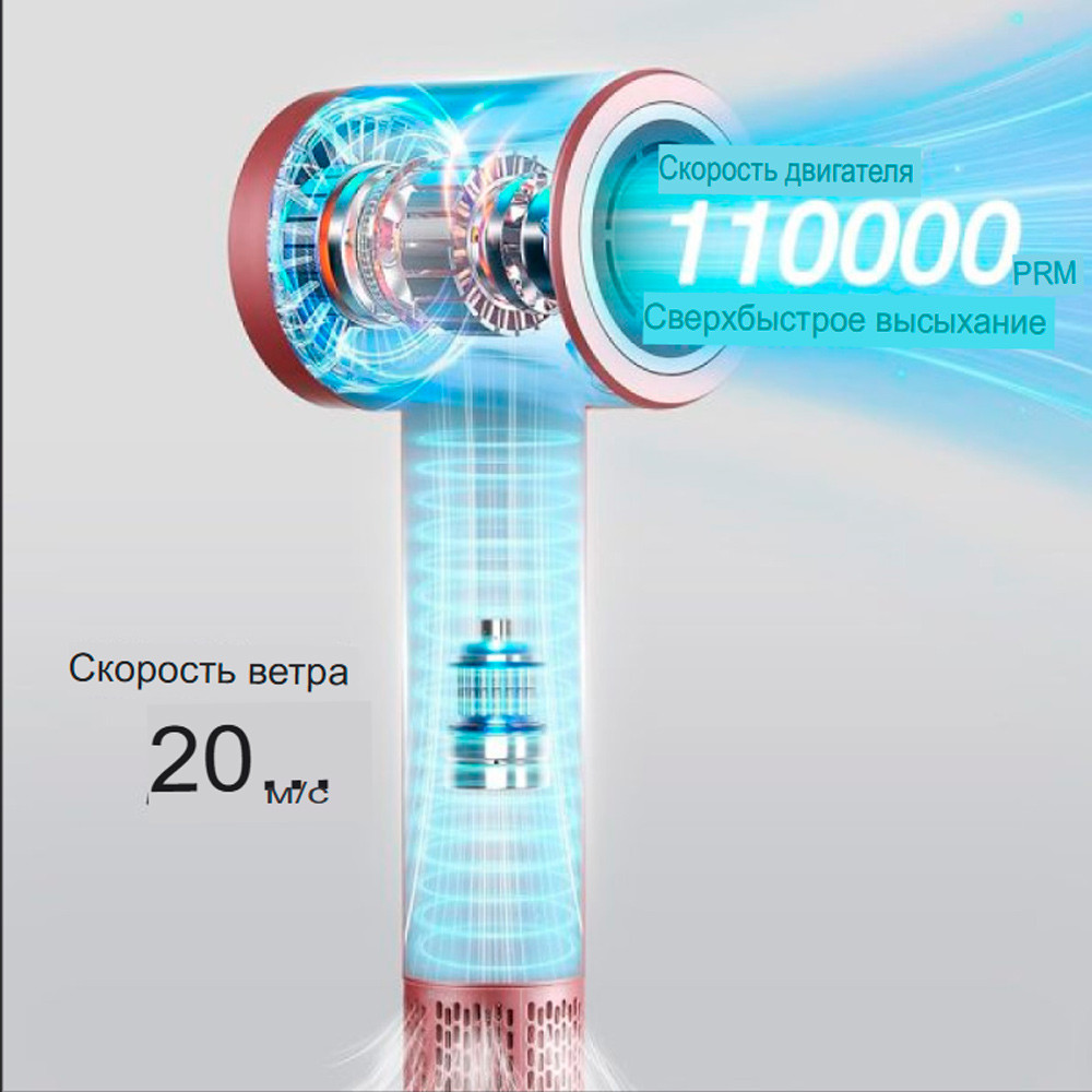 • высокая скорость вращения 110 000 об/мин: обеспечивает мощный поток воздуха для быстрой и эффективной сушки, экономя ваше время и усилия;