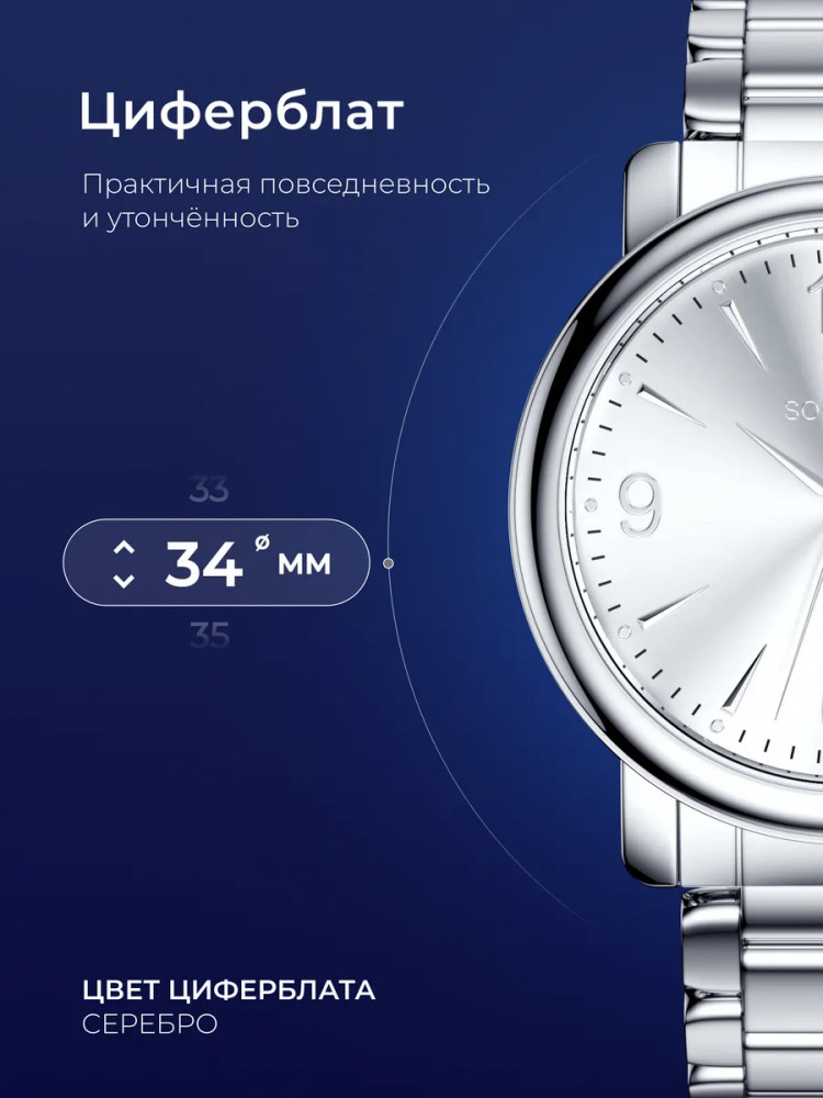 Женские часы наручные коллекция I want. Коллекция воплощает в себе энергию, свободу и движение. В круглом корпусе установлен высокоточный кварцевый японский механизм. Под прочным минеральным стеклом расположилось имя бренда SOKOLOV — свидетельство высокого качества. Красоту и элегантность корпуса подчёркивает аккуратный стальной браслет, который комфортно ложится на запястье и легко регулируется по размеру. Удобная пряжка-бабочка надёжно фиксирует часы на руке их обладательницы. Ловите каждое мгновение, проживайте его на все сто и берите от жизни всё!