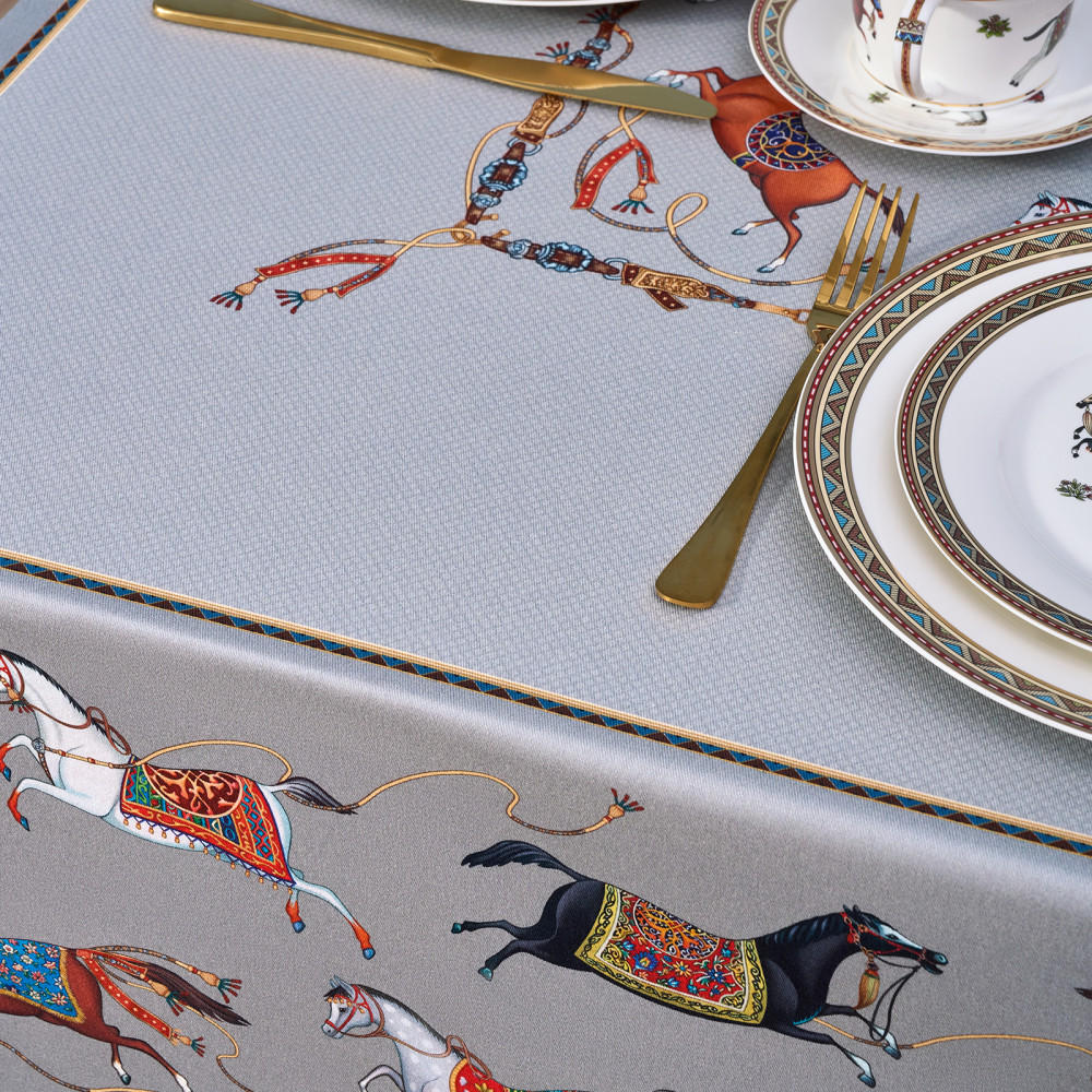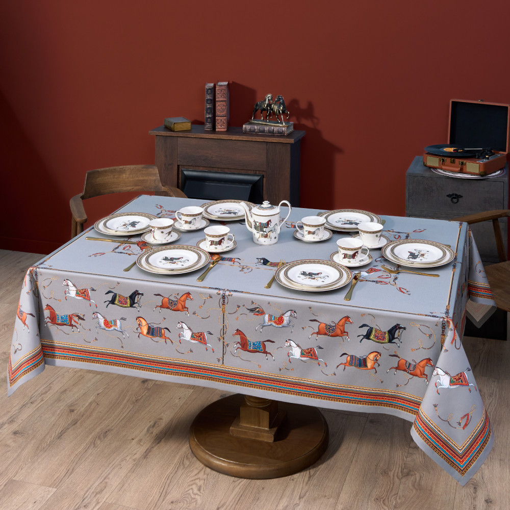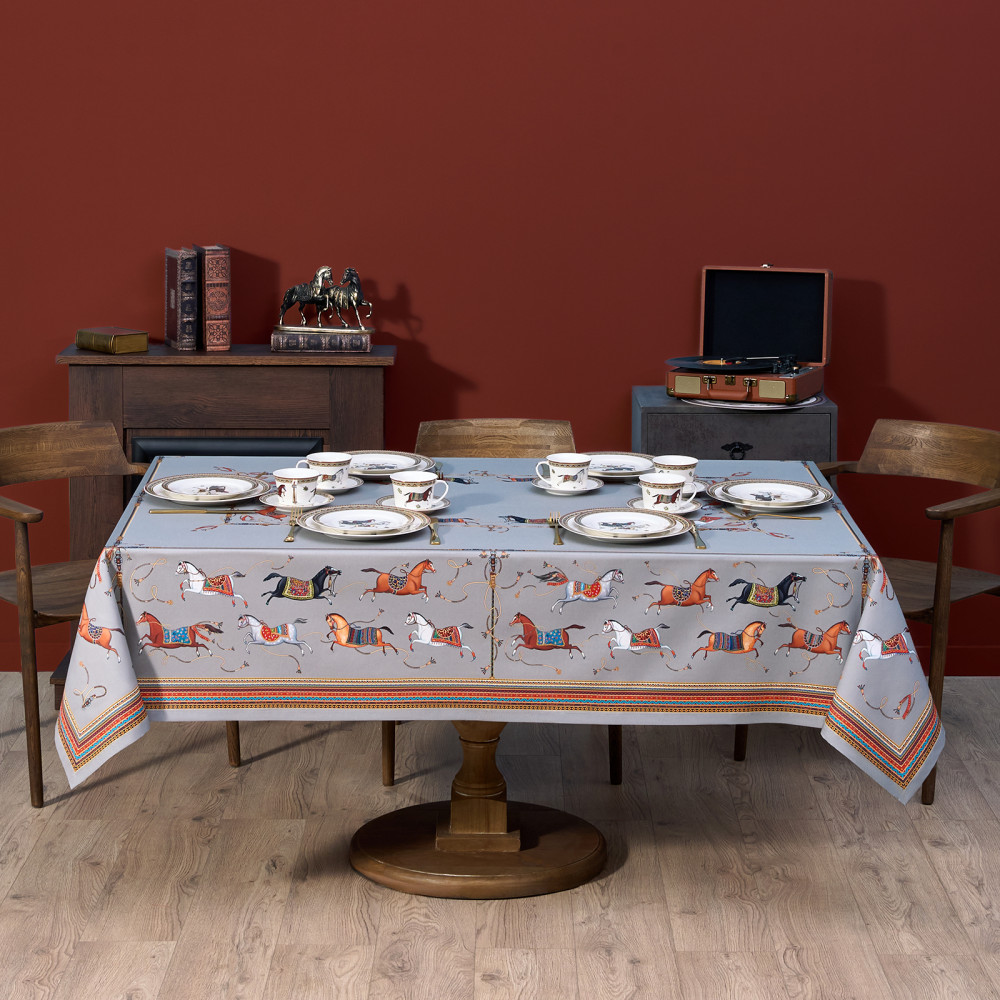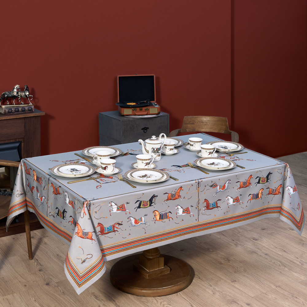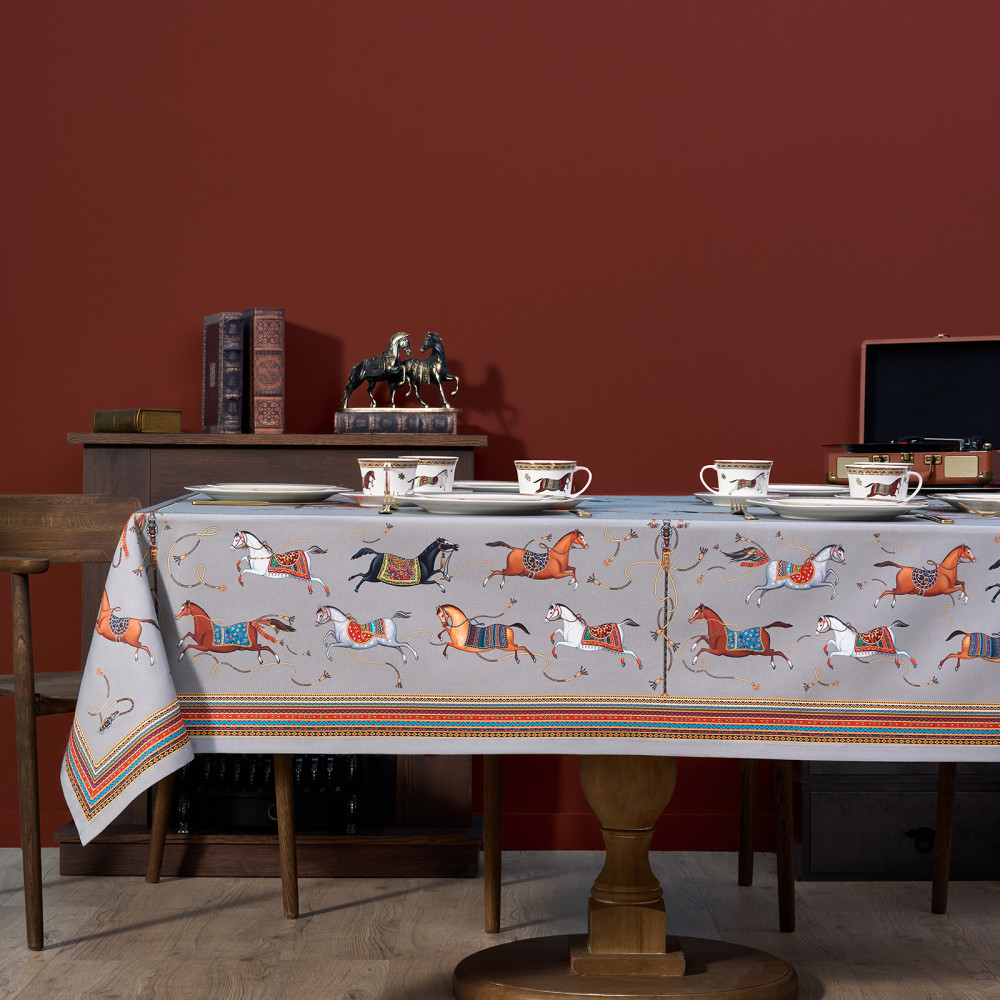Благородный фон украшен орнаментом с грациозными лошадьми, создавая атмосферу восточной роскоши. Лошадь — символ 2026 года, поэтому скатерть будет актуальна как для ежедневного использования в интерьере в стиле бохо, так и для праздничной сервировки. Авторский принт разработан художниками эксклюзивно для Lefard и нанесён методом цифровой печати, что гарантирует яркость и стойкость красок даже после множества стирок. Производство находится в России, мы относимся с любовью к каждому товару, ровные и аккуратные швы порадуют Вас. Мы рады производить текстиль высокого качества. Новогодняя скатерть станет выразительным акцентом праздничной сервировки и отличным подарком на Новый год, Рождество или новоселье. Такой текстиль порадует маму, бабушку, сестру, подругу или коллегу — красивое изделие для дома всегда символизирует внимание и заботу. В коллекцию Passage входят: дорожки на стол, скатерти круглые, прямоугольные и овальные, кухонные полотенца и сервировочные салфетки. Все предметы дополняют друг друга и помогают создать уютный интерьер.
