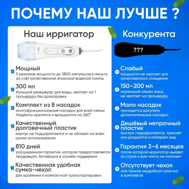 💳 Оплатить за товар можно при получении 🇰🇿 Есть бесплатная доставка по Казахстану 🎁 Копите бонусы с каждой покупки Ирригатор H2ofloss HF-6 — эффективное решение для качественного ухода за полостью рта, обеспечивающее глубокую очистку и комфортное использование. |