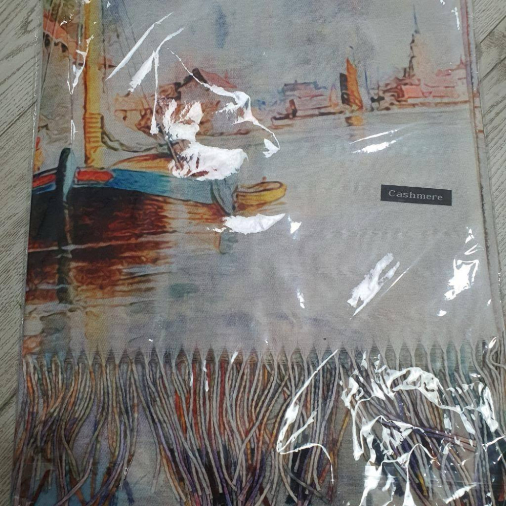 Этот палантин — настоящее произведение искусства, сочетающее в себе тепло и уникальный дизайн. Изготовленный из премиального смесового материала (50% кашемир, 50% вискоза), он невероятно мягок, легок и приятен к телу, при этом обладает прочностью и красивым драпированием. Главная особенность модели — оригинальный разноцветный принт с изображением «Картина Пристань/Цветы», который делает аксессуар ярким, стильным и выразительным акцентом, способным преобразить самый скромный наряд, привнося в него атмосферу путешествий или весеннего сада.