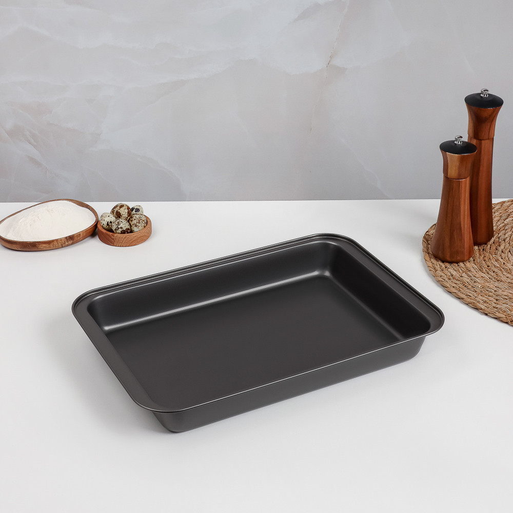 💳 Оплатить за товар можно при получении 🇰🇿 Есть бесплатная доставка по Казахстану от 1 дня 🎁 Копите бонусы с каждой покупки Глубокий противень размером 42×29×5 см, выполненный из углеродистой стали, станет незаменимым помощником для приготовления различных блюд. Благодаря антипригарному покрытию, пища не прилипает к поверхности, что позволяет легко извлекать готовые блюда и упрощает процесс очистки. Черный цвет придаёт противню элегантный и современный вид, который украсит любую кухню. Оптимальный размер и глубокая конструкция делают этот противень идеальным для запекания мяса, рыбы, овощей, а также для приготовления запеканок и других многослойных блюд. Углеродистая сталь обеспечивает равномерное распределение тепла, что гарантирует отличные результаты при каждом использовании. Этот глубокий противень с антипригарным покрытием создан для вашего удобства и комфорта. Надежный и долговечный, он станет важным элементом вашего кухонного арсенала, помогая вам готовить вкусные и аппетитные блюда с легкостью. |