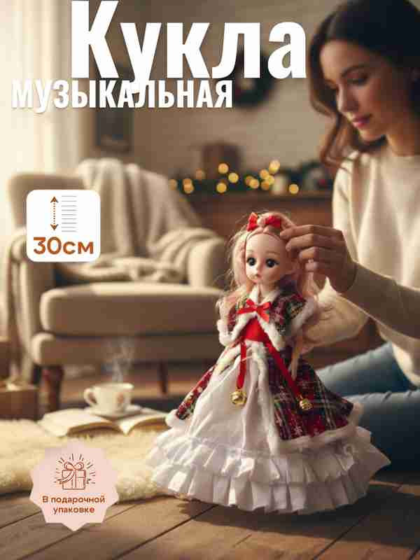 Новогодняя шарнирная музыкальная кукла-брелок-33% +40