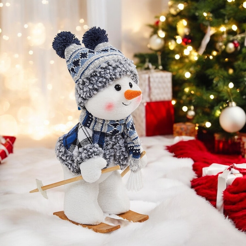 Встречайте праздники в компании самого спортивного и обаятельного зимнего гостя! Этот чудесный снеговик уже полностью готов к зиме: он надел свой лучший костюм, встал на лыжи и спешит принести в ваш дом атмосферу веселья, уюта и новогоднего чуда. Он станет идеальным компаньоном для вашей новогодней елки и вызовет улыбку у каждого, кто его увидит.