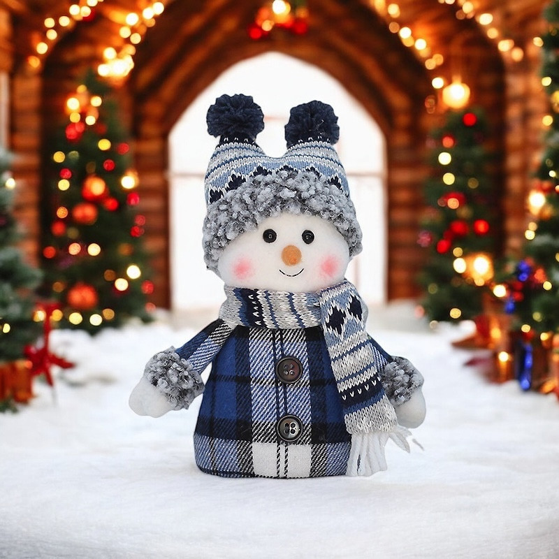 Знакомьтесь, этот очаровательный Снеговик — идеальный компаньон для ваших новогодних праздников. Он словно только что пришел с заснеженной улицы, чтобы согреться у вашего камина. Одетый в уютный вязаный свитер с орнаментом, стильный шарф и пушистую шапку-ушанку, он вызывает улыбку с первого взгляда.