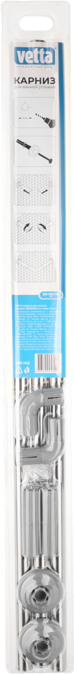 Vetta Карниз для ванной угловойВ данный момент этот товар отсутствует в продаже. Возможно, у нас найдется аналогичный или похожий товар здесь. Карниз для ванной предназначен для крепления полиэтиленовых и тканевых штор. С помощью этого аксессуара легко оградить душевое пространство и защитить остальную часть комнаты от брызг. Изделие выполнено из высококачественного металла, устойчивого к воздействию внешних факторов, и надежно защищено от коррозии. |