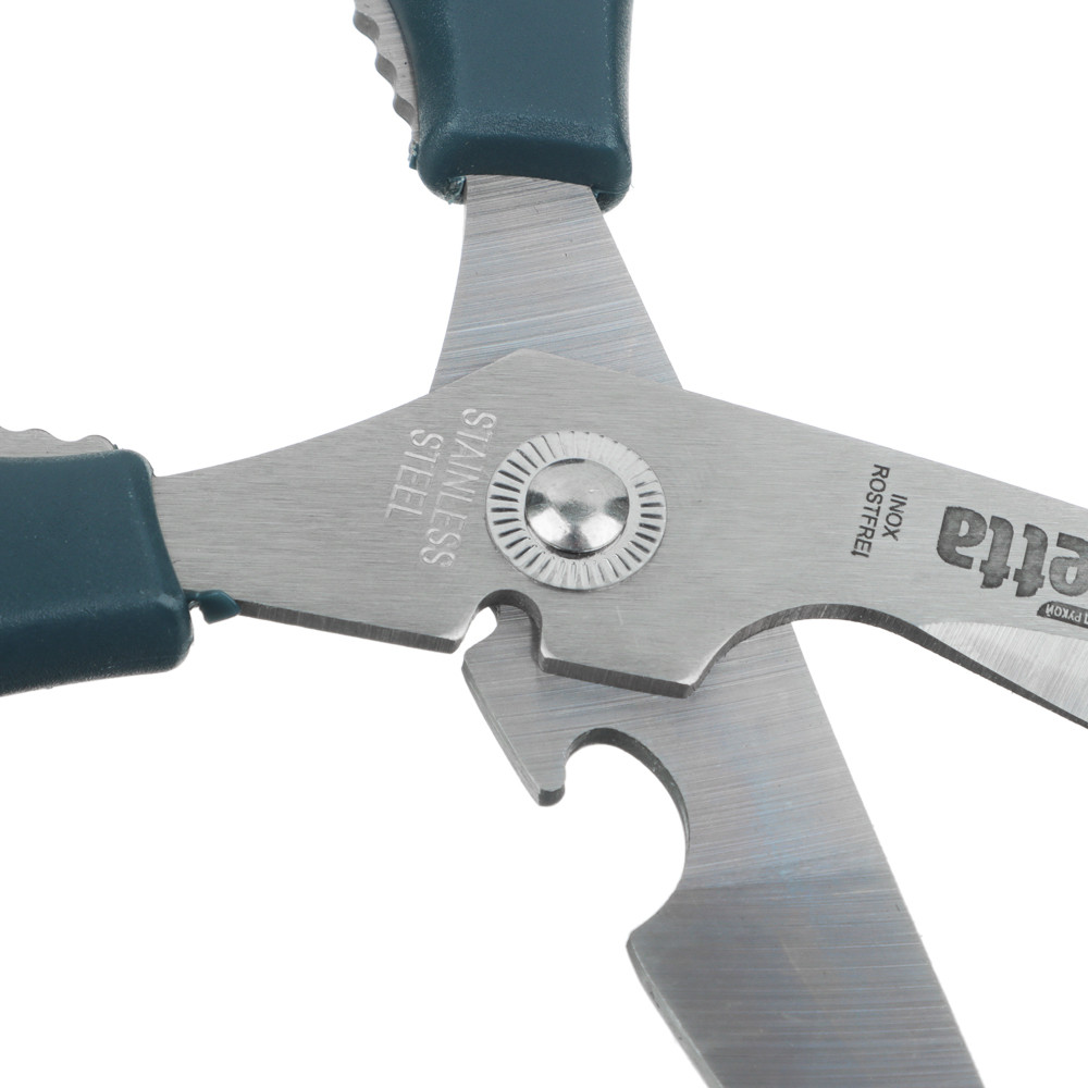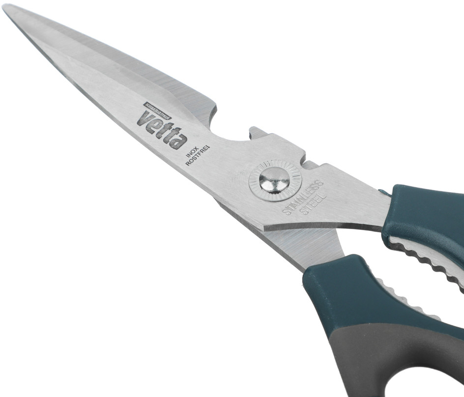 💳 Оплатить за товар можно при получении 🇰🇿 Есть бесплатная доставка по Казахстану от 1 дня 🎁 Копите бонусы с каждой покупки Универсальные кухонные ножницы всегда необходимы для разделки готовой курицы, вскрытия упаковок, чистки рыбы и др. Также ножницы имеют функцию раскалывания орехов и открывалки бутылок. Ножницы кухонные сделаны из высококачественного металла. Ножницы имеют надежное винтовое крепление. |