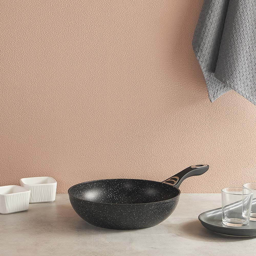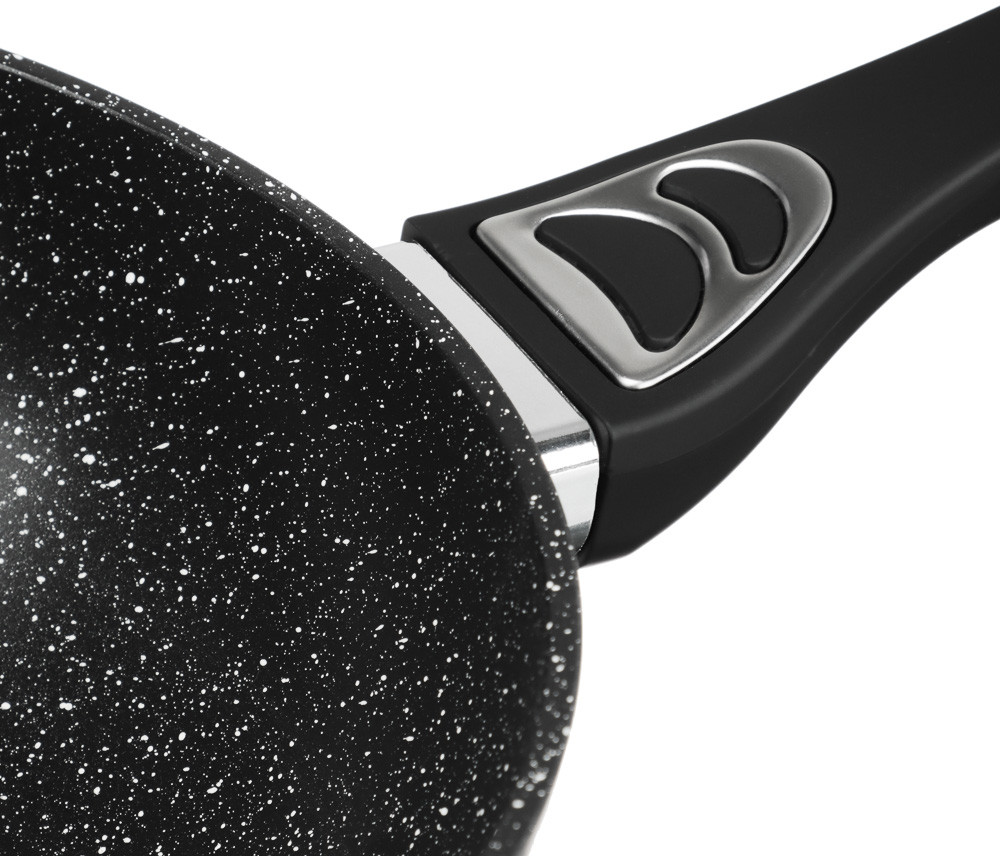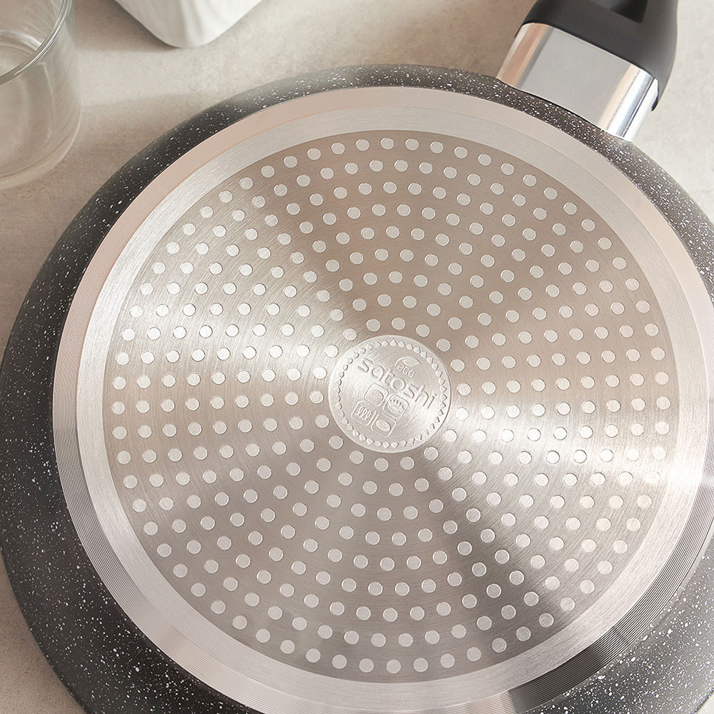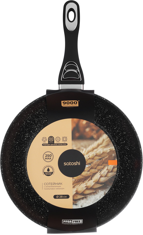 Satoshi Сотейник «Танто»В данный момент этот товар отсутствует в продаже. Возможно, у нас найдется аналогичный или похожий товар здесь. Увидев сотейник SatoshiТанто диаметром 28 см сразу хочется отправиться к плите готовить! Привлекают внимание хромированные вставки на ручке посуды сотейника и дизайн покрытия под мрамор. Благодаря качественному антипригарному покрытию, готовить на такой сковороде можно практически без масла. А бакелитовая ручка с силиконовым напылением, не нагревается, что позволит вам больше не использовать прихватки! Высокие стенки сотейника не ограничивают в выборе рецептов — жарьте, тушите, бланшируйте, пассируйте продукты. Для укомплектования кухни выбирайте любую плиту, потому что эта сковорода подходит для всех видов плит, в том числе и для индукционной. Готовить с удовольствием легко, если вы выбираете сотейник серии Танто! |