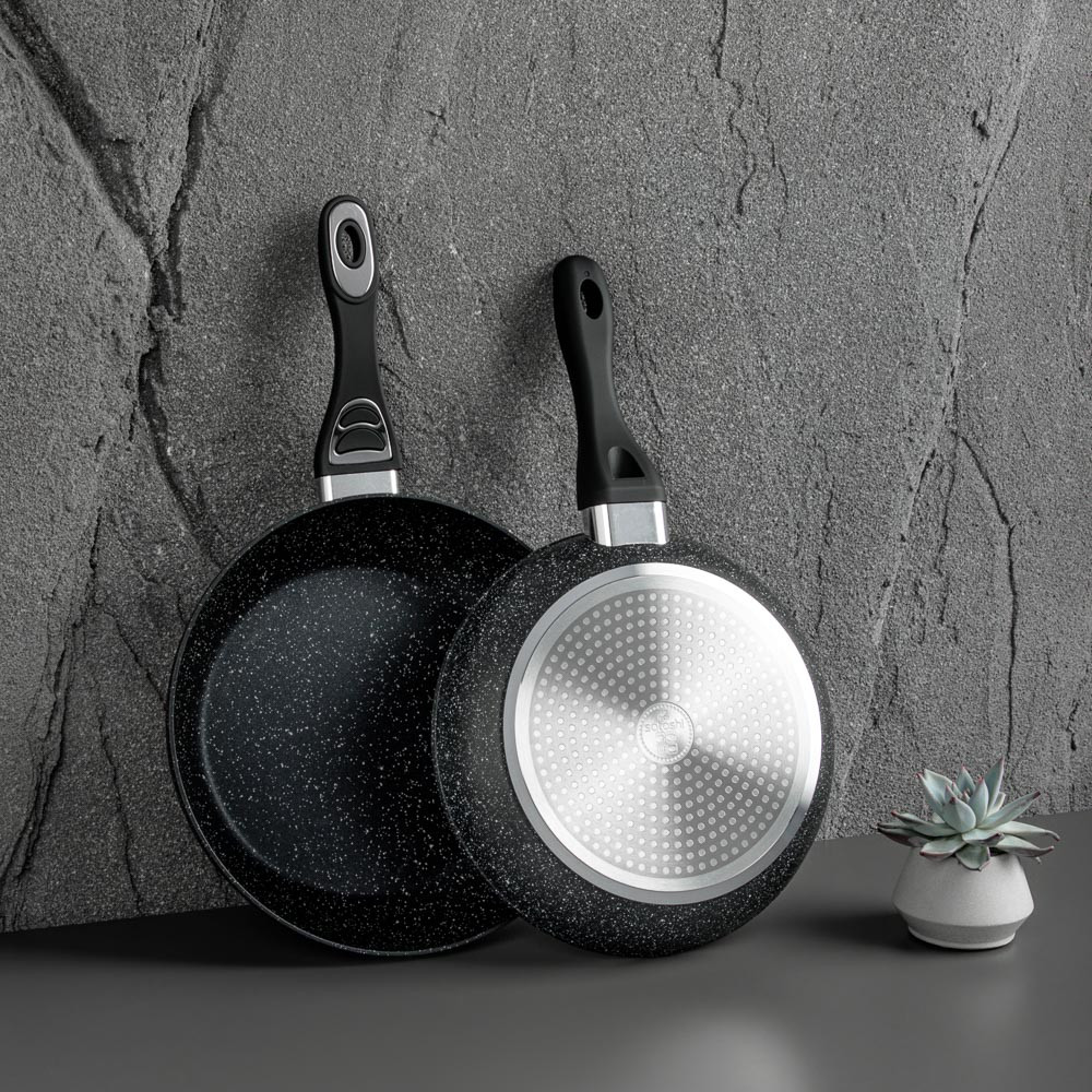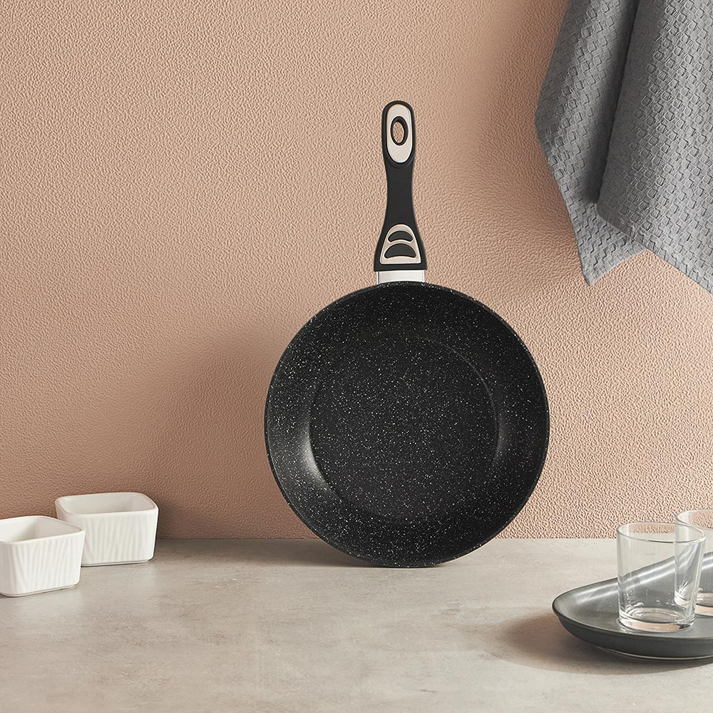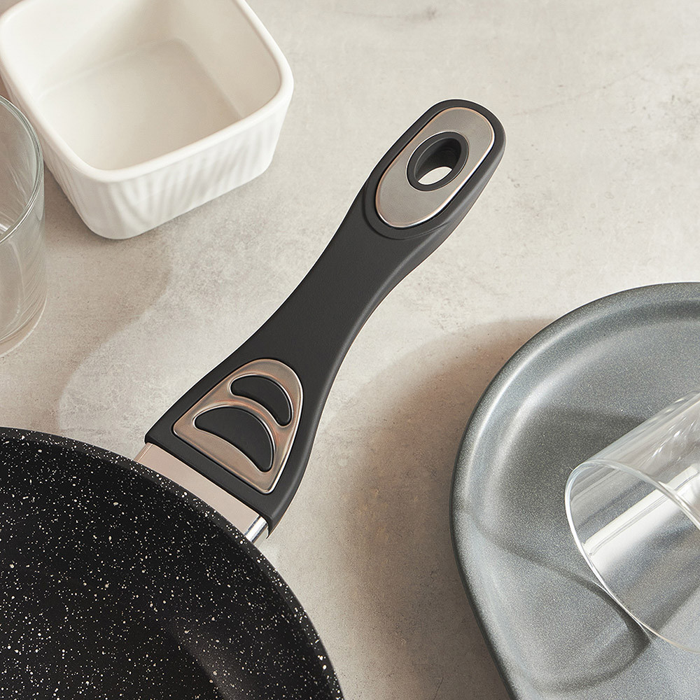 Satoshi Сотейник «Танто»В данный момент этот товар отсутствует в продаже. Возможно, у нас найдется аналогичный или похожий товар здесь. Увидев сотейник SatoshiТанто диаметром 28 см сразу хочется отправиться к плите готовить! Привлекают внимание хромированные вставки на ручке посуды сотейника и дизайн покрытия под мрамор. Благодаря качественному антипригарному покрытию, готовить на такой сковороде можно практически без масла. А бакелитовая ручка с силиконовым напылением, не нагревается, что позволит вам больше не использовать прихватки! Высокие стенки сотейника не ограничивают в выборе рецептов — жарьте, тушите, бланшируйте, пассируйте продукты. Для укомплектования кухни выбирайте любую плиту, потому что эта сковорода подходит для всех видов плит, в том числе и для индукционной. Готовить с удовольствием легко, если вы выбираете сотейник серии Танто! |