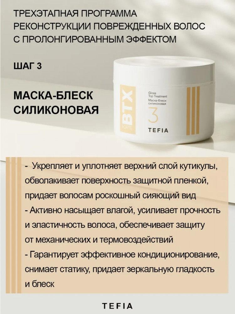 Tefia Маска-блеск силиконовая для волос «Gloss Top Treatment»