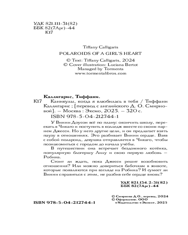 💳 Оплатить за товар можно при получении 🇰🇿 Есть бесплатная доставка по Казахстану от 1 дня 🎁 Копите бонусы с каждой покупки Серия: Время любви. Романтические истории для подростков Можем ли мы знать, как долго продлится любовь? У Винни Доусон всё по плану: закончить школу, переехать в Чикаго и поступить в колледж вместе со своим парнем Джесси. Но у него свои цели, он хочет в другой университет и предлагает сделать «паузу» в отношениях. И это разбивает Винни сердце. Взяв с собой «Полароид», девушка отправляется в Чикаго, чтобы познакомиться с городом до начала учебы. |