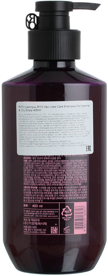 Ryo Шампунь для волос от выпадения для нормальной и сухой кожи головы «Hair Loss Care Shampoo For Normal & Dry Scalp»