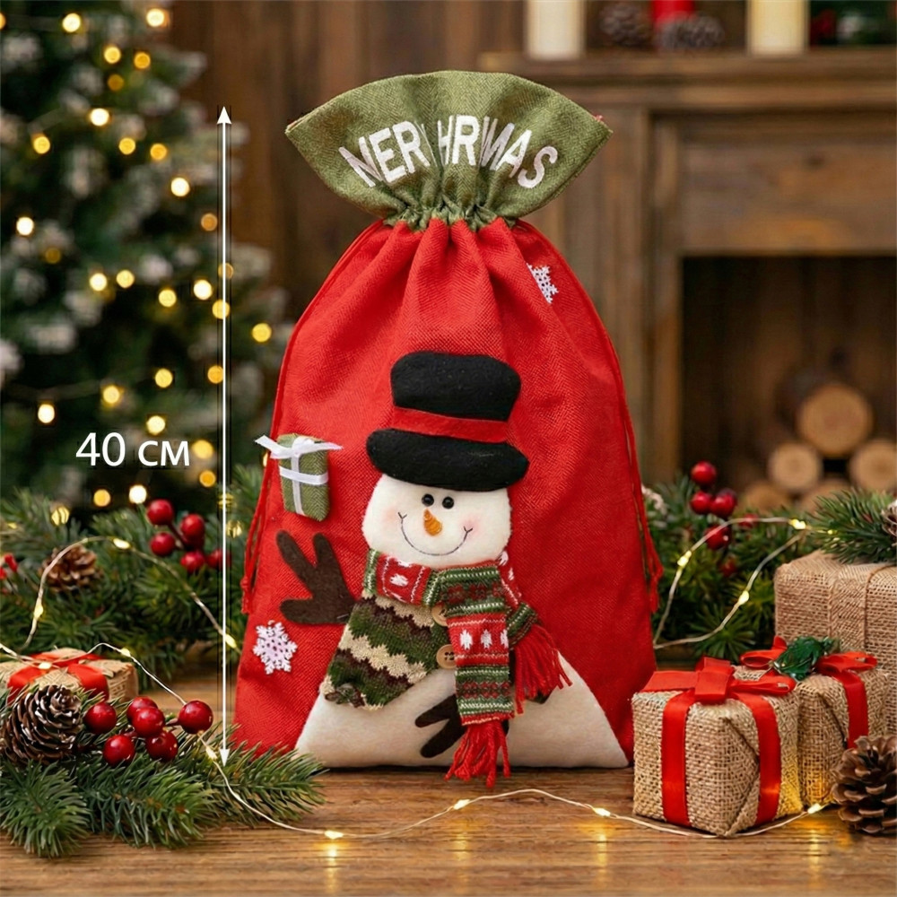 Упаковка, которая дарит эмоции! В Новый год важен не только подарок, но и то, как он преподнесен. Наш праздничный мешочек с очаровательным Снеговиком — это готовое решение для красивой и быстрой упаковки. Забудьте о скотче, ножницах и рвущейся бумаге — просто положите подарок внутрь и затяните ленточки!