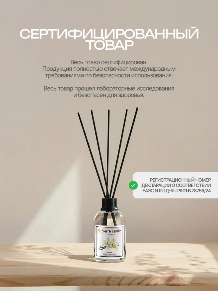 🕯 Ароматический диффузор Pierre Cardin с палочками. Диффузор наполнит ваш дом приятным, свежим и стойким ароматом, создавая атмосферу уюта, гармонии и комфорта. Эстетичный парфюм для дома станет стильным акцентом интерьера и подарит ощущение чистоты и расслабления. Ароматизатор с палочками обеспечивает равномерное распространение аромата и длительное звучание. Интенсивность запаха легко регулируется-достаточно добавить или убрать палочки, а также переворачивать их каждые 2–3 дня.