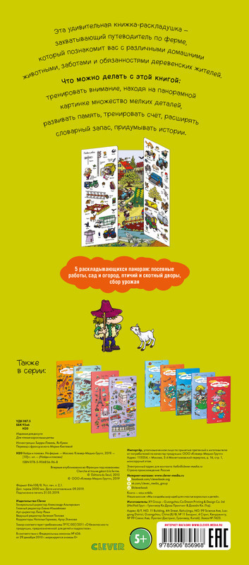 💳 Оплатить за товар можно при получении 🇰🇿 Есть бесплатная доставка по Казахстану от 1 дня 🎁 Копите бонусы с каждой покупки Серия: Найди и покажи Эта удивительная книжка-раскладушка — захватывающий путеводитель по ферме, который познакомит вас с различными домашними животными, заботами и обязанностями деревенских жителей. Что можно делать с этой книгой тренировать внимание, находя на панорамной картинке множество мелких деталей, развивать память, тренировать счёт, расширять словарный запас, придумывать истории. 5 раскладывающихся панорам посевные работы, сад и огород, птичий и скотный дворы, сбор урожая. |