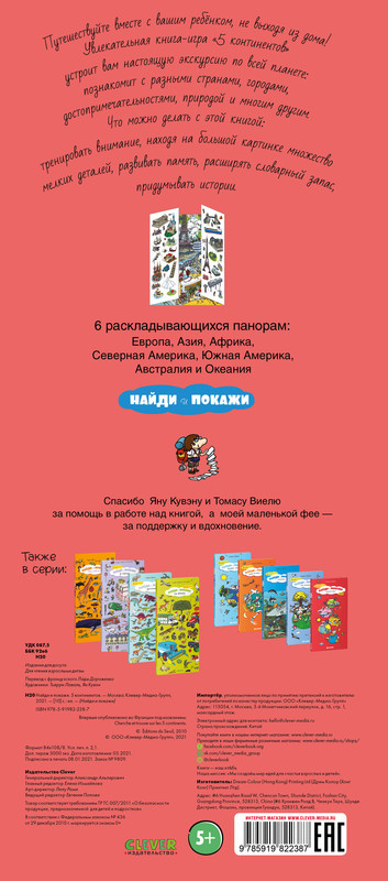 💳 Оплатить за товар можно при получении 🇰🇿 Есть бесплатная доставка по Казахстану от 1 дня 🎁 Копите бонусы с каждой покупки Серия: Найди и покажи Путешествуйте вместе с вашим ребёнком, не выходя из дома! Увлекательная книга-игра «5 континентов» устроит вам настоящую экскурсию по всей планете: познакомит с разными странами, городами, достопримечательностями, природой и многим другим. |