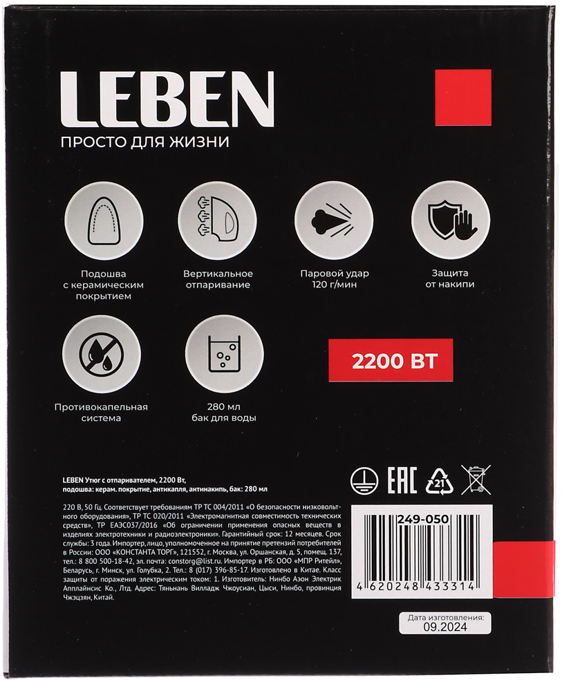Leben Утюг с отпаривателем-25% +541