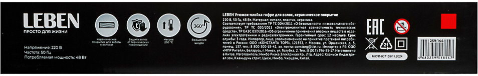 💳 Оплатить за товар можно при получении 🇰🇿 Есть бесплатная доставка по Казахстану от 1 дня 🎁 Копите бонусы с каждой покупки Утюжок-выпрямитель Leben позволяет делать безупречные укладки, как в салонах красоты. Устройство мощностью 48 Вт нагревается до 200° всего за полминуты. Керамическое пластины равномерно прогреваются и деликатно выравнивают пряди, предотвращая их пересушивание и повреждение. Для вашего удобства утюжок-выпрямитель Leben оснащен гибким вращающимся шнуром длиной 180 см. |
