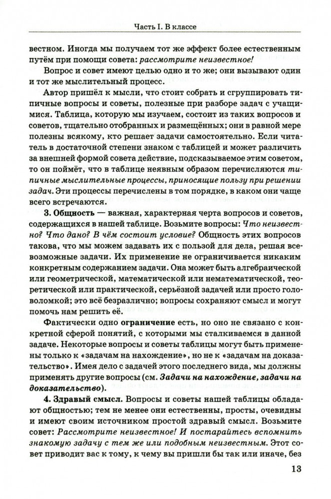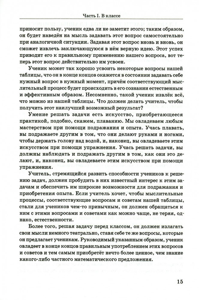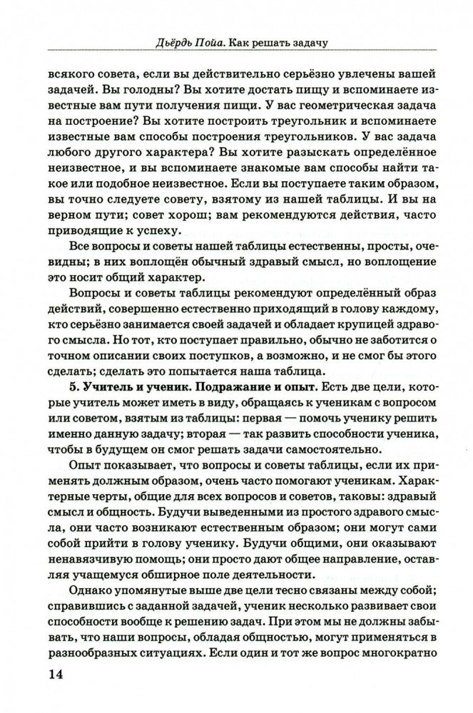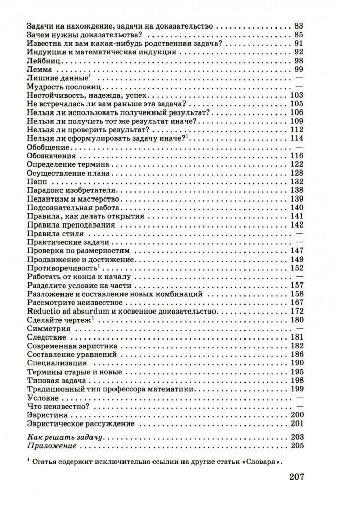 Как решать задачуВ данный момент этот товар отсутствует в продаже. Возможно, у нас найдется аналогичный или похожий товар здесь. Серия: Советские учебники Как решить математическую задачу? Выучить формулы? Выстроить последовательность вычислений? Найти похожий пример? А может быть, решение уже есть — осталось лишь его найти? Пособие для учителей «Как решить задачу» известного американского математика Д. Пойа предлагает универсальную методику обучения решению задач. Она основана на развитии навыков эвристического мышления у учащихся. Именно творческая активность формирует математическую самостоятельность при работе с любыми задачами. Теоретический материал состоит из трёх частей: работы над задачей в классе, построения и реализации плана её решения и краткого эвристического словаря. В качестве инструмента автор предлагает поэтапную схему ответов ученика на наводящие вопросы учителя. Пособие будет полезно как учителям и репетиторам, так и родителям, занимающимся с детьми самостоятельно. |