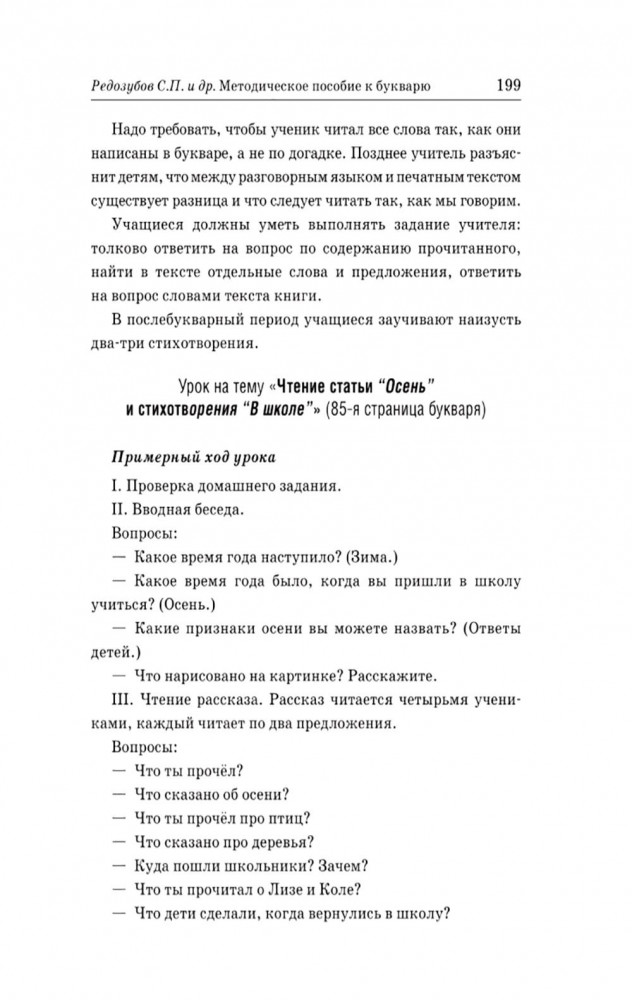 Методическое пособие к букварюВ данный момент этот товар отсутствует в продаже. Возможно, у нас найдется аналогичный или похожий товар здесь. Взрослому человеку кажется, что научиться читать и писать очень просто. Но зачастую у ребёнка 6–7 лет возникают определённые трудности. А перед учителями и родителями встают вопросы о том, как помочь ребёнку успешно справиться с освоением чтения и письма. В какой последовательности следует изучать буквы и звуки, слоги и слова? Как объяснить ученику разницу речи звучащей и речи письменной? Как на слух разложить слова на слоги и звуки, а затем правильно их написать? Ответы на многие непростые вопросы обучения младших школьников грамоте найдёт внимательный читатель в данном пособии. Кроме того, здесь представлены поурочные разработки занятий, основанные на большом опыте преподавательской деятельности советского педагога и автора букварей С. П. Редозубова. Эти методические материалы могут использовать и учителя на уроках в школе, и родители, занимающиеся с детьми дополнительно. |