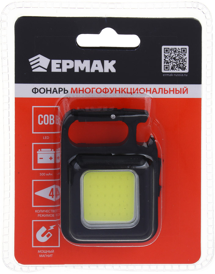 💳 Оплатить за товар можно при получении 🇰🇿 Есть бесплатная доставка по Казахстану от 1 дня 🎁 Копите бонусы с каждой покупки Многофункциональный светодиодный фонарь Ермак с диодами типа COB предназначен для туристических целей, а также может использоваться в процессе ремонта при условии недостаточной освещенности. Аккумуляторный фонарь можно повесить на крючок, закрепить на магните или поставить на поверхность, оперев на выдвижную подставку. Светит ярко и стабильно. Предусмотрено 4 режима свечения. Емкость аккумулятора — 500 мАч. Комплект включает кабель для зарядки USB. |