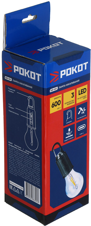 💳 Оплатить за товар можно при получении 🇰🇿 Есть бесплатная доставка по Казахстану от 1 дня 🎁 Копите бонусы с каждой покупки Надёжный и компактный светильник Рокот с прозрачной колбой — отличное решение для дома, дачи, кемпинга или походов. Оснащён ярким LED-светом с тремя режимами свечения: яркий, средний и тусклый тёплый свет, и аккумулятором ёмкостью 600 мАч, обеспечивающим до 5 часов работы. Заряжается через Type-C кабель всего за 2 часа. Световой поток — 120 лм, дальность освещения до 30 м. Прочный пластиковый корпус с карабином и степенью защиты IP65 выдерживает перепады температур от —20 до 50 °C. |