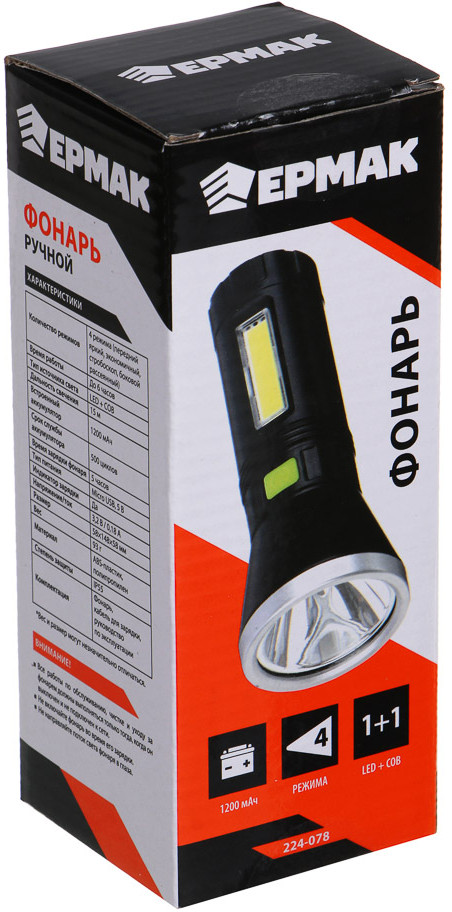 💳 Оплатить за товар можно при получении 🇰🇿 Есть бесплатная доставка по Казахстану от 1 дня 🎁 Копите бонусы с каждой покупки Компактный фонарь станет вашим надежным спутником в самых разных ситуациях. Благодаря продуманной эргономике и весу всего 93 грамма он удобно лежит в руке и не занимает много места. Современная комбинация светодиодов LED и технологии COB обеспечивает мощное направленное освещение с одновременной мягкой подсветкой пространства вокруг. Фонарь предлагает четыре практичных режима работы: от максимальной яркости для сложных условий до экономичного варианта для длительного использования, а также специальные функции стробоскопа и боковой рассеянной подсветки. Степень защиты IP55 гарантирует устойчивость к пыли и водяным струям, что позволяет использовать фонарь в любых погодных условиях. Оснащенный емким аккумулятором 1200 мАч, фонарь обеспечивает до 6 часов непрерывной работы, а индикатор заряда помогает контролировать уровень энергии. Устройство заряжается через разъем Micro USB и сохраняет свою надежность в широком диапазоне температур от −20 до 50 °C. |