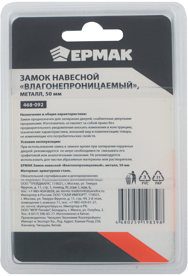 ЕРМАК Замок навесной влагонепроницаемый-25% +21