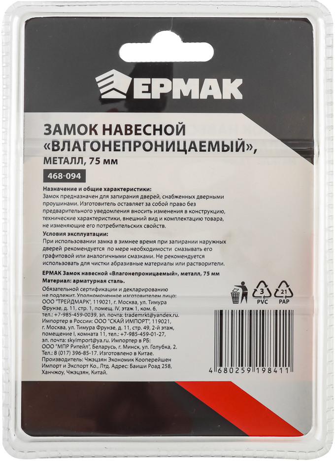 ЕРМАК Замок навесной влагонепроницаемый-25% +46