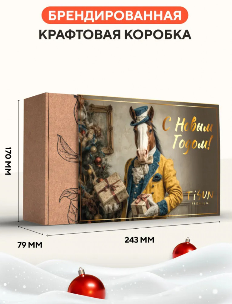 Подарки на Новый год коллегам — это способ подчеркнуть внимание и создать доброжелательную атмосферу в команде. Такие подарки новогодние подойдут и для близких: будь то подарок сестре, другу, брату — каждому, кому хочется сказать что-то тёплое без лишних слов. Подарочный набор на Новый год от TiSun предлагает разнообразие вкусов и упаковку с зимним оформлением — стильно, празднично и готово к вручению.