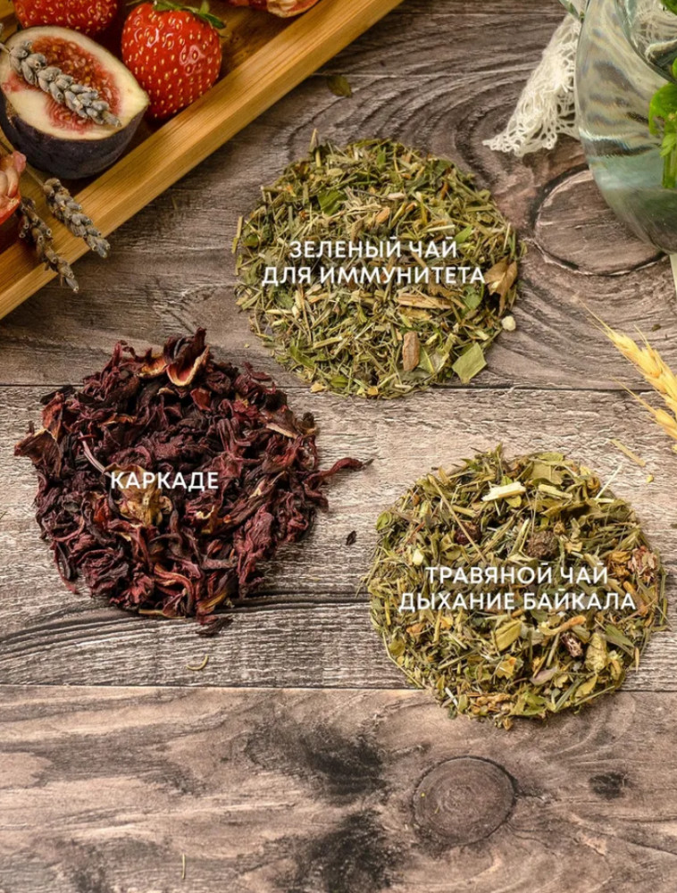 Дыхание Байкала: листья малины, брусники, курильский чай, семена укропа, хвоя сосны, молодые побеги и почки березы, трава топинамбура, ягоды рябины, таволга иволистная, облепиховый жмых, кипрей (иван-чай), мята полевая; 18 г.