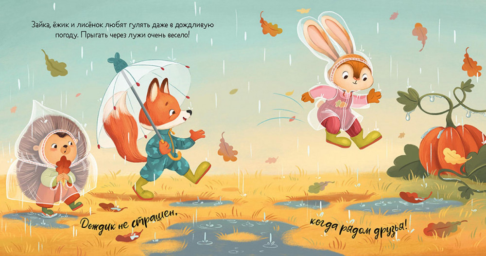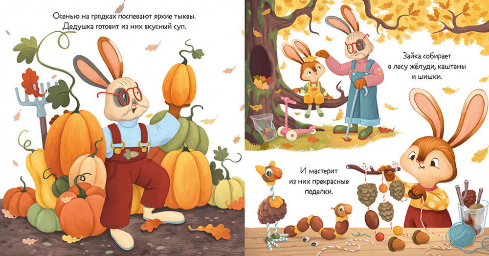 💳 Оплатить за товар можно при получении 🇰🇿 Есть бесплатная доставка по Казахстану от 1 дня 🎁 Копите бонусы с каждой покупки Серия: Книжки-картинки Книжка-картинка с нежными иллюстрациями познакомит малышей с красивым и уютным временем года и с осенними приключениями Зайки. Встречайте золотую осень вместе с Зайкой! Красивая и увлекательная книжка для малышей «Зайка и золотая осень» расскажет ребенку об осени и о приключениях милой героини Зайки, а еще поможет выучить новые слова и потренировать важные навыки, выполняя веселые задания книги для детей. Зайка так интересно проводит осень! Играет с разноцветными листьями, мастерит поделки из желудей и каштанов, гуляет с друзьями, собирает грибы и печет ароматные яблочные пироги вместе с бабушкой. Листая страницы Clever книги для малышей, вы вместе с ребенком познакомитесь с лесными зверюшками, поиграете в «найди и покажи», поможете Зайке собрать портфель в школу, а малышу — научиться отличать вкусные грибы от опасных. Серия книжек-картинок для знакомства маленьких читателей с временами годами — это лучшие познавательные сказки для малышей, это яркие эмоциональные иллюстрации, милые герои и удобный формат для маленьких ручек. |
