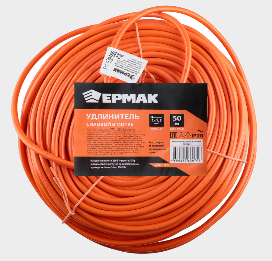Силовой удлинитель Ермакв мотке — это удобный и практичный инструмент для подключения электроприборов на расстоянии от розетки. Длина кабеля составляет 50 метров, что позволяет использовать его даже в больших помещениях или на открытых площадках. Моток обеспечивает удобное хранение и транспортировку, а также защищает кабель от повреждений и перегибов. Данный удлинитель изготовлен из качественных материалов, что обеспечивает его долговечность и надежность в использовании. Тип кабеля — 2×1.5 мм2.