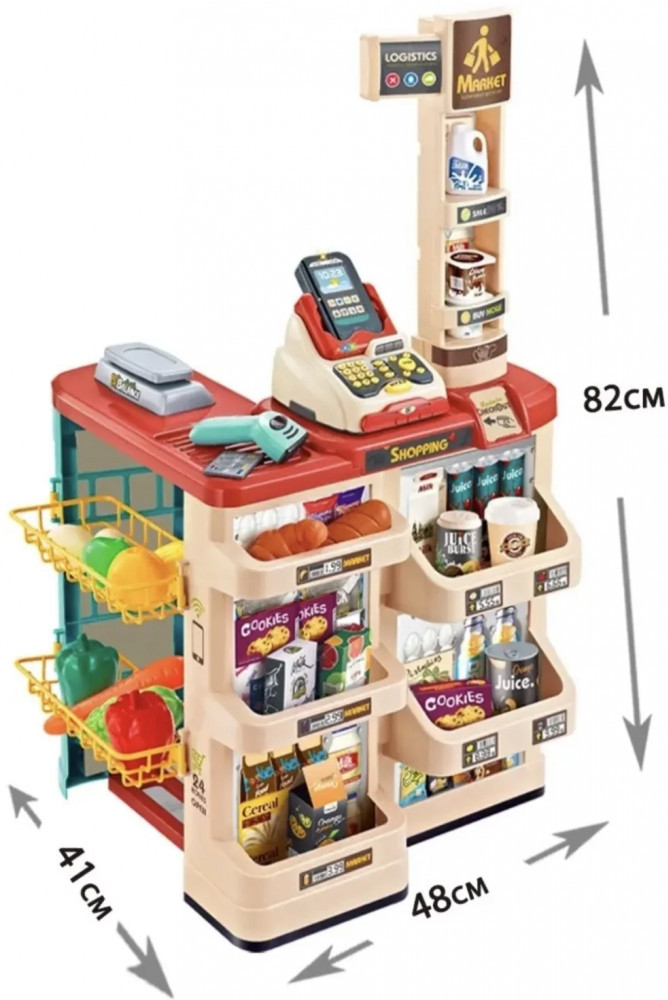 Игровой набор «Домашний супермаркет»В данный момент этот товар отсутствует в продаже. Возможно, у нас найдется аналогичный или похожий товар здесь. Игровой набор «Кухонный магазин» включает 48 аксессуаров и корзину, позволяя детям увлекательно и реалистично играть в магазин. Основной материал — прочный пластик, обеспечивающий долговечность и безопасность во время игры. Касса работает от двух батареек АА (не входят в комплект), сканер — от двух батареек ААА (не входят в комплект), а терминал — от двух батареек AG13 (в комплекте). Размер магазина составляет 82×48×41 см, а упаковки — 60×44×19 см. |