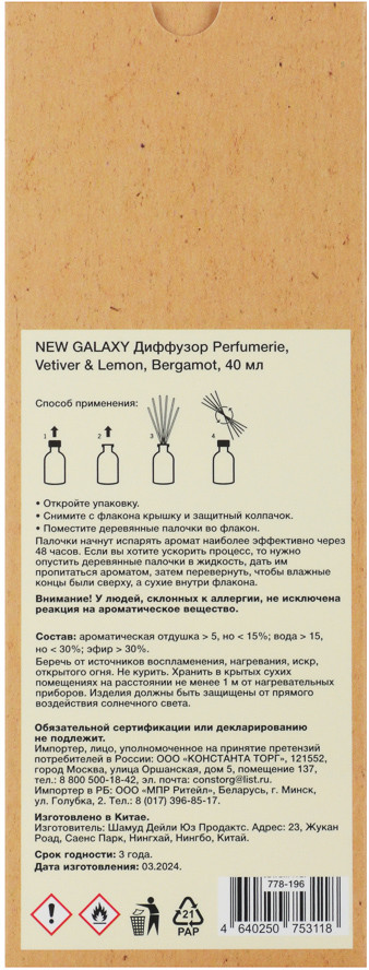 New Galaxy Аромадиффузор «Vetiver&Lemon, Bergamot»