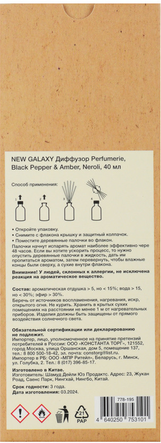 New Galaxy Аромадиффузор «Black Pepper&Amber, Neroli»
