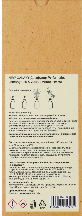New Galaxy Аромадиффузор «Lemongrass&Vetiver, Amber»
