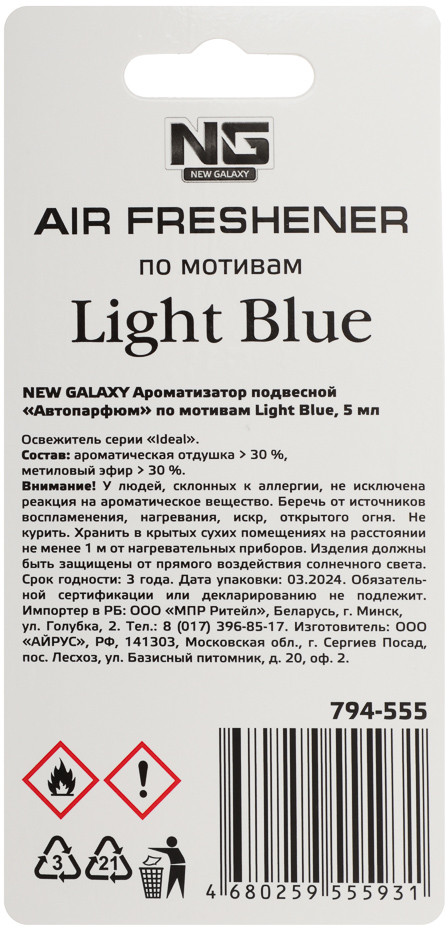 New Galaxy Ароматизатор подвесной «Light Blue»