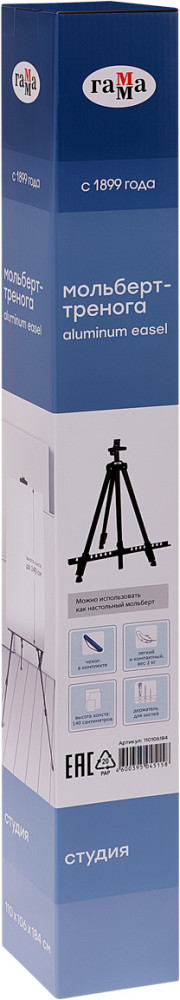 💳 Оплатить за товар можно при получении 🇰🇿 Есть бесплатная доставка по Казахстану от 1 дня 🎁 Копите бонусы с каждой покупки Серия: Студия Переносной профессиональный алюминиевый мольберт Гамма «Студия» — идеальная модель для пленэра, путешествия, но может быть использован как настольный мольберт. Это самый высокий алюминиевый мольберт «Гамма», максимальная высота 184 см. Мольберт при этом легкий и компактный, весит 2 кг. Размер мольберта — 110×106×184 см, максимальный размер холста для работы — 140 см. |
