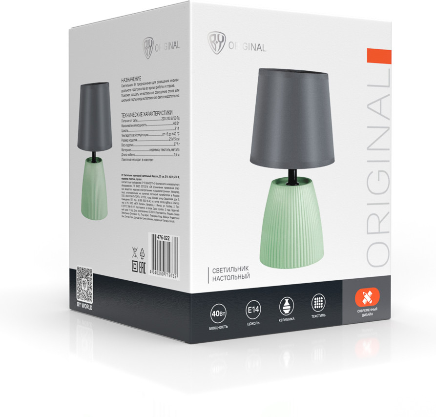 💳 Оплатить за товар можно при получении 🇰🇿 Есть бесплатная доставка по Казахстану от 1 дня 🎁 Копите бонусы с каждой покупки Керамический светильник BY Марсель высотой 25 см в серо-зеленой гамме станет элегантным акцентом вашего интерьера. Компактный и стильный, он идеально впишется в пространство спальни или гостиной, даря мягкий рассеянный свет для чтения, работы или создания уютной атмосферы. Керамическое основание и текстильный абажур сочетают в себе эстетику и практичность: светильник не занимает много места, работает от стандартной сети 230В и поддерживает лампы до 40Вт с цоколем E14. Будет выигрышно сочетаться с отделкой стен, мебелью, дизайнерскими элементами, становясь объединяющей деталью интерьера. Это не просто источник света, а изысканная деталь, которая подчеркнет ваш вкус и сделает вечера дома еще теплее и уютнее. |